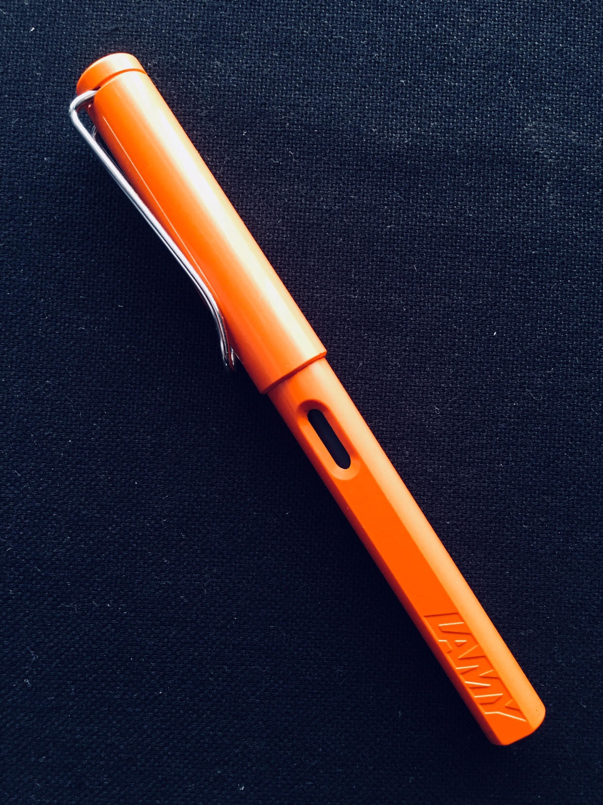 Lamy makes a brightly colored plastic fountain pen called the Safari and I love mine. My favorite has an italic nib so I can imitate the sensuous sweeping strokes of Renaissance masters. I even have an optic yellow model I filled with (Japanese) fluorescent ink to use as a highlighter.